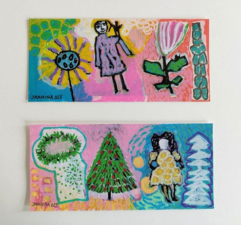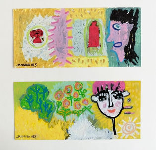 Eine wachsende Serie übermalter Einladungskarten meiner Ateliertage der letzten 10 Jahre.