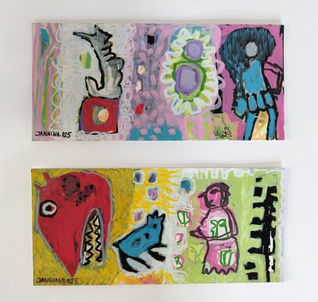 Technik: Acrylfarben auf Papier, auf Karton kaschiert.